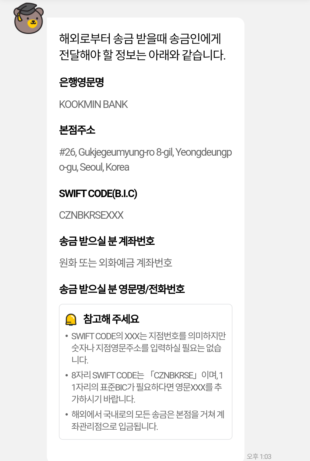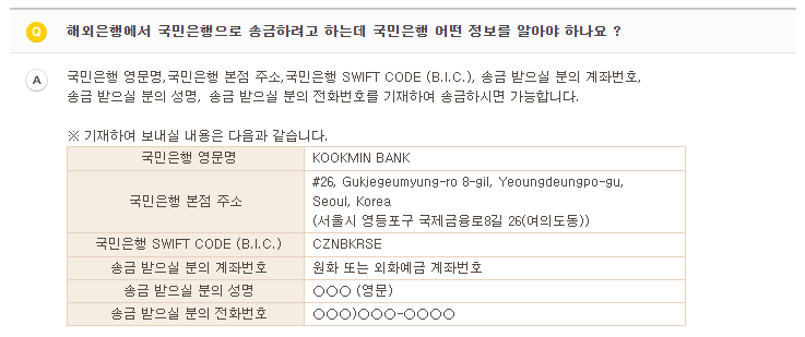 해외에서 국민은행으로 송금할 때 필요한 정보