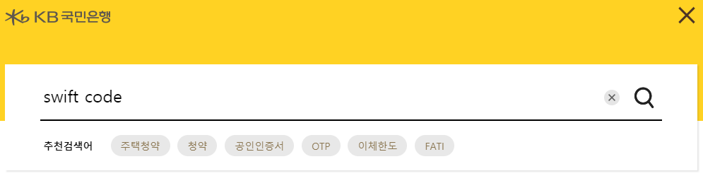 은행 홈페이지에서도 검색으로 swift code를 치면 나오지 않습니다. 스위프트 코드 검색해도 마찬가지네요.