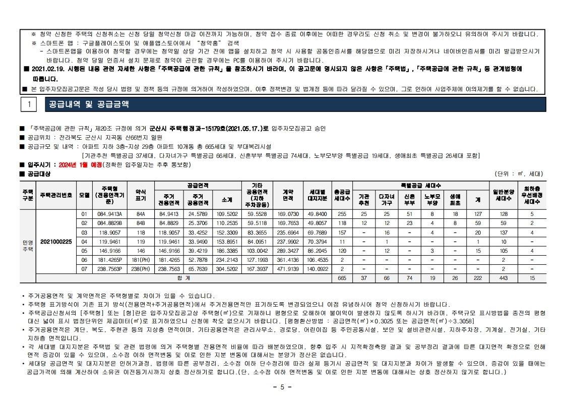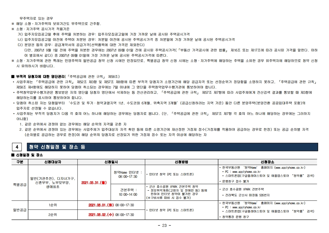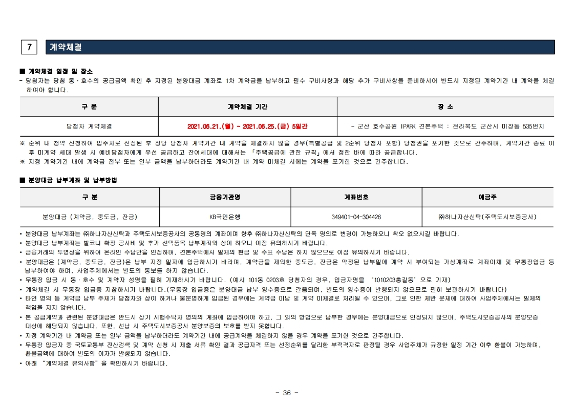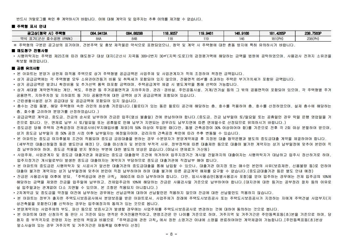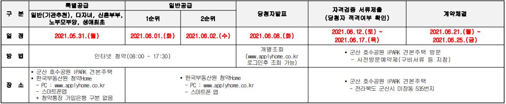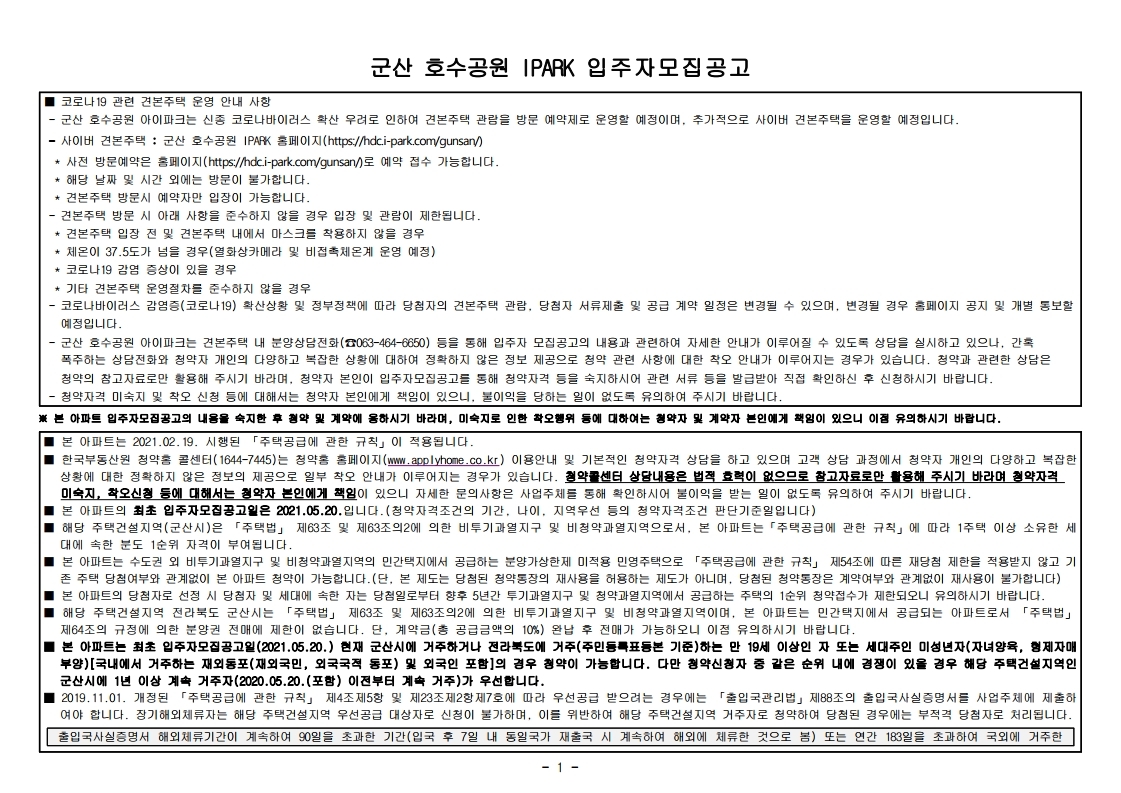 군산 호수공원 아이파크 입주자 모집공고문입니다. 출처는 청약홈입니다.