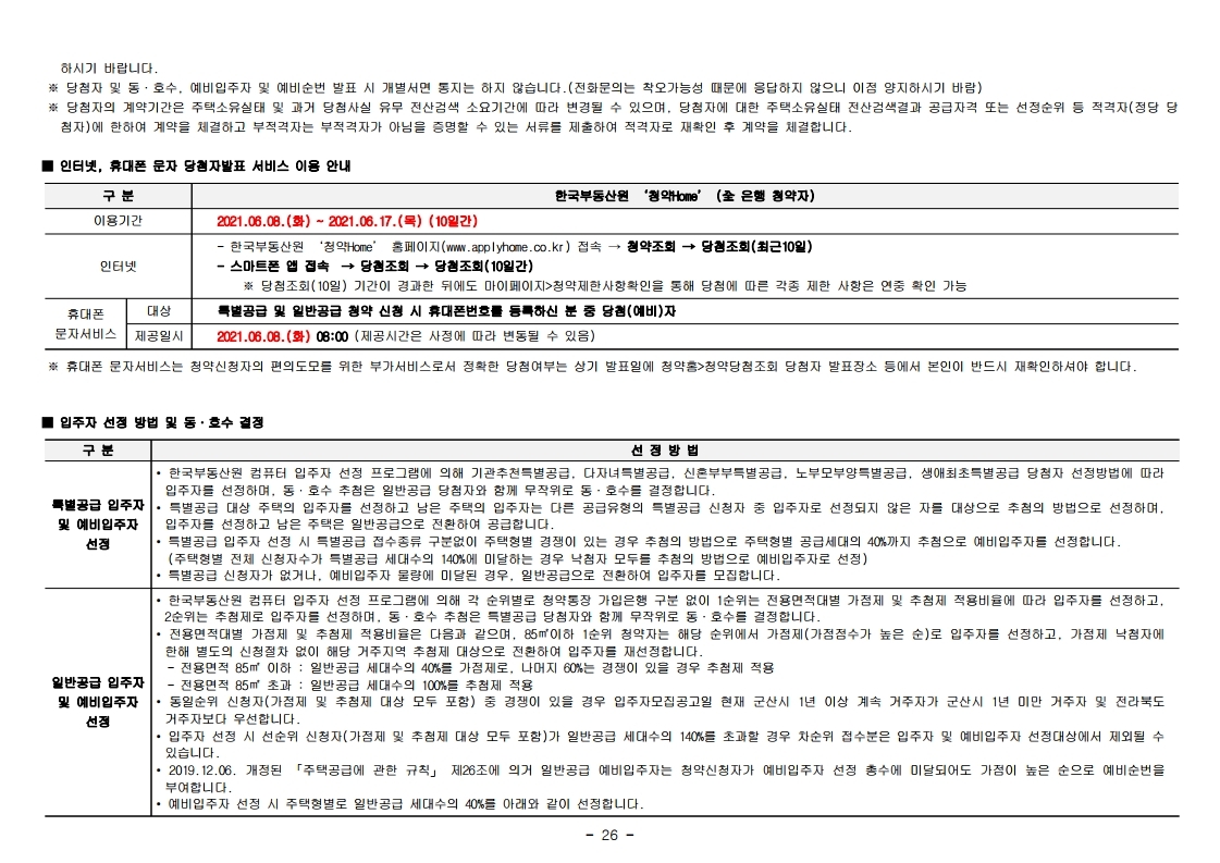 본 아파트의 최초 입주자모집공고일은 2021.05.20.입니다. 청약자격조건의 기간, 나이, 지역우선 등의 청약자격조건 판단기준일입니다.