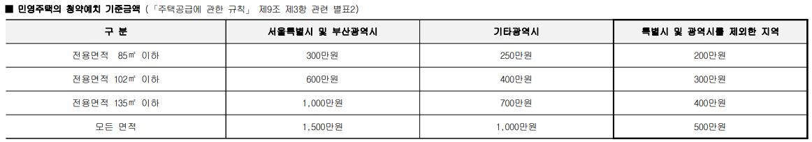 청약예치금 및 통장 자격