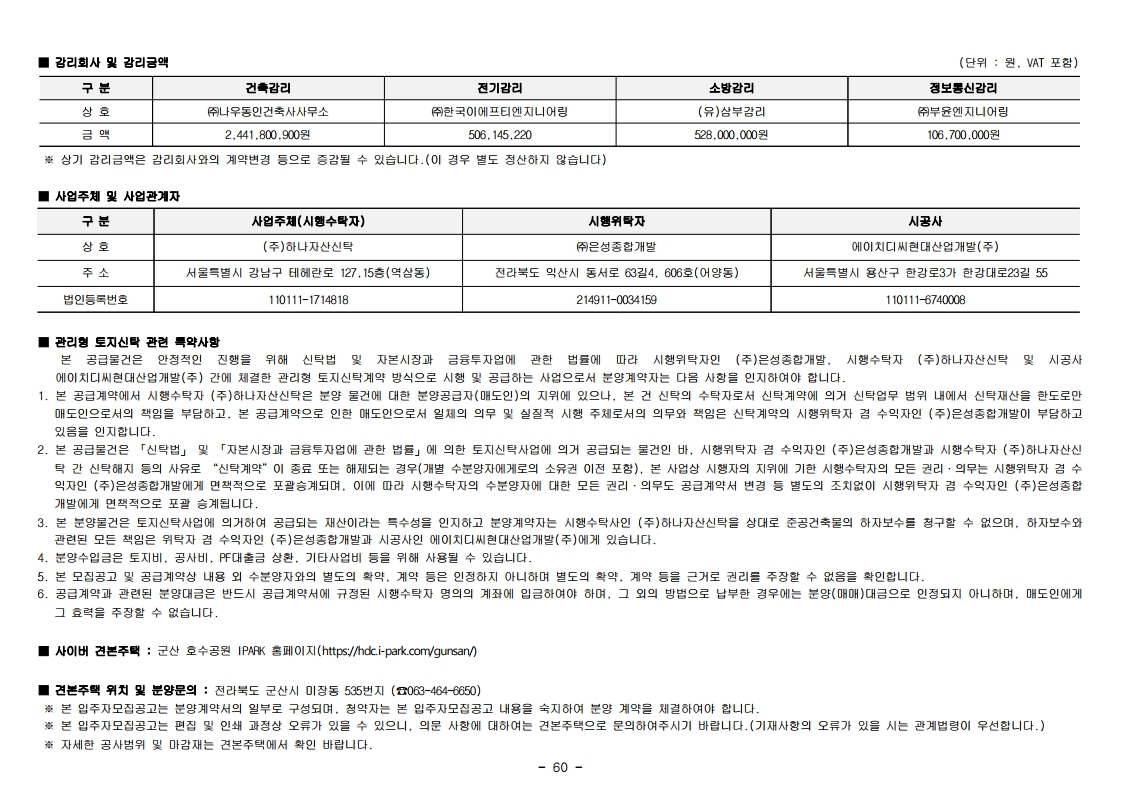 - 사이버 견본주택 : 군산 호수공원 IPARK 홈페이지(https://hdc.i-park.com/gunsan/)