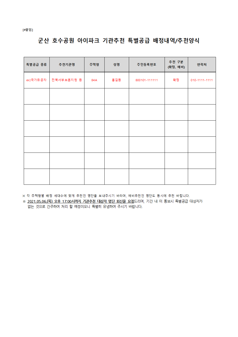 5. 신청서류 : [붙임] 참조, 신청서상의 구비서류를 반드시 확인 후 같이 제출
