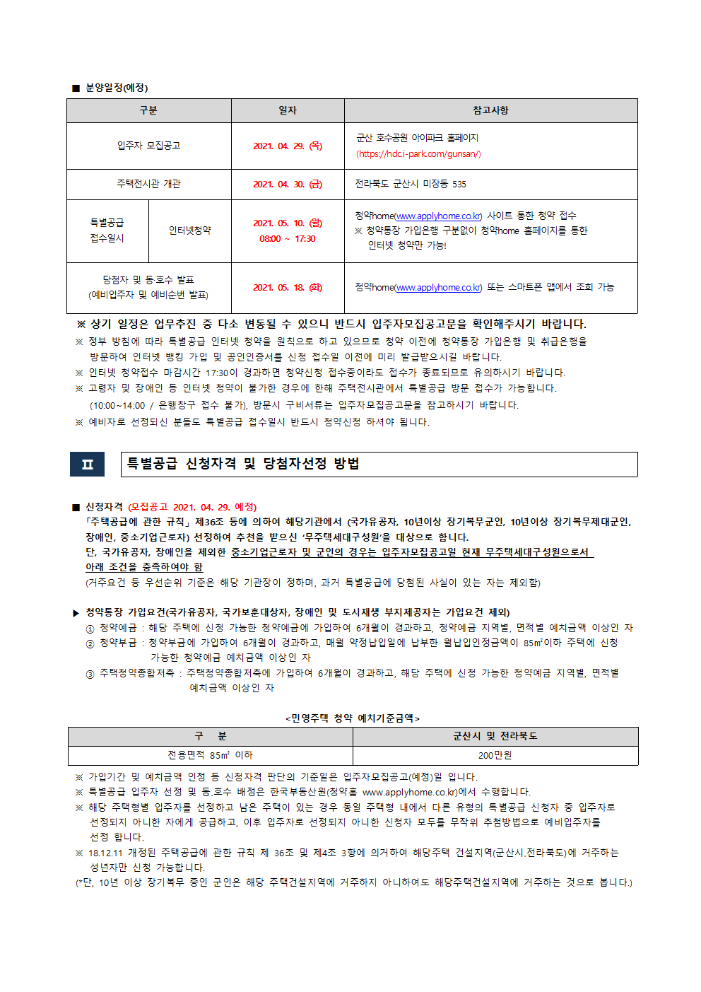 군산 호수공원 아이파크 분양일정 안내