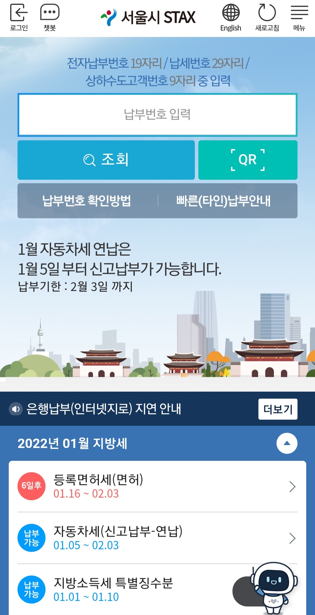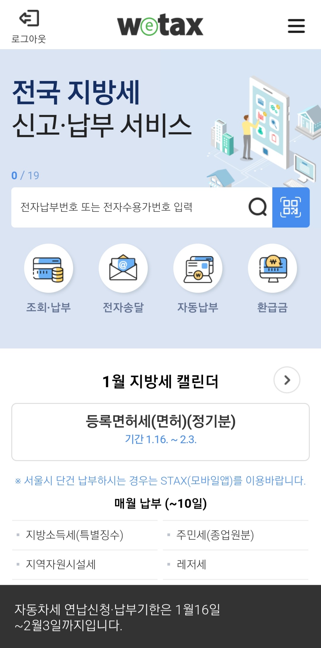 서울시 STAX에 들어갑니다. 1월 지방세 안내가 나옵니다.