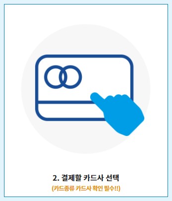 ② 결제하실 카드사 선택 (국민카드/하나카드/BC카드/현대카드/신한카드/농협카드/삼성카드)