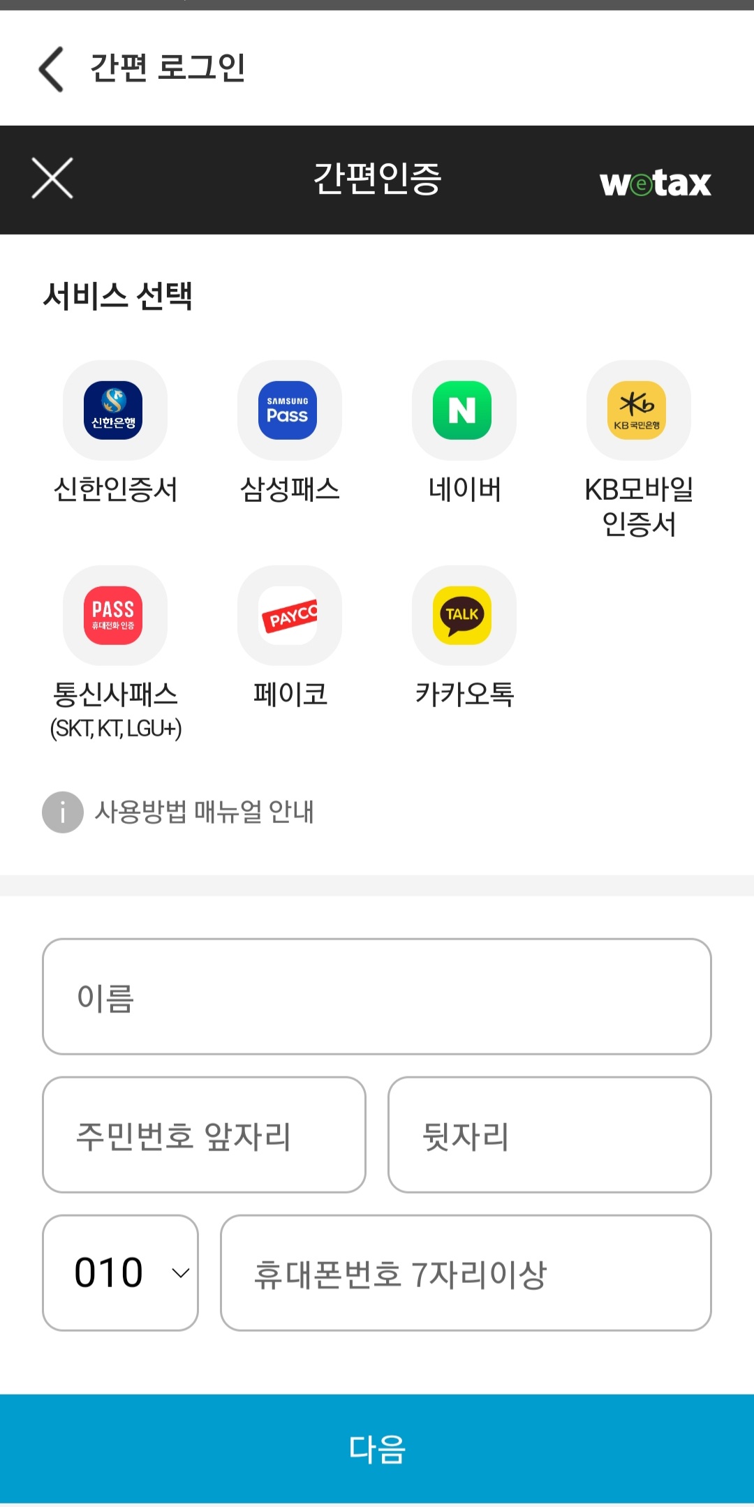 위택스 로그인은 간편인증으로 가능합니다. 공인인증서가 없다면 간편 인증을 이용하세요.