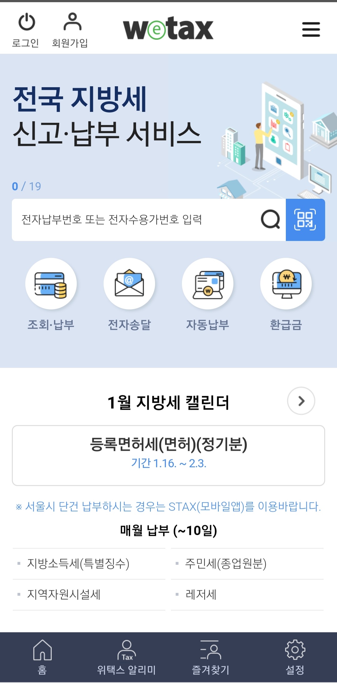 서울시 STAX에 들어갑니다. 1월 지방세 안내가 나옵니다.